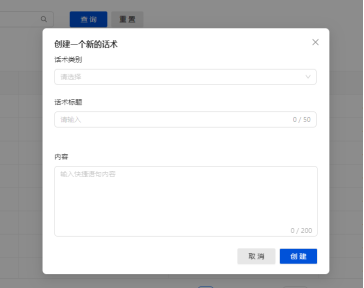 管理员可以通过话术管理添加话术,企业话术(全部员工通用),个人话术(个人员工使用),添加完毕过后,客服人员就可以在客服工作台-快捷语句里面找到该话术并使用。
