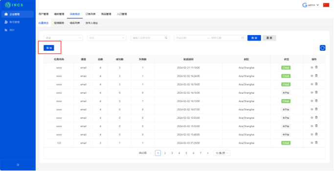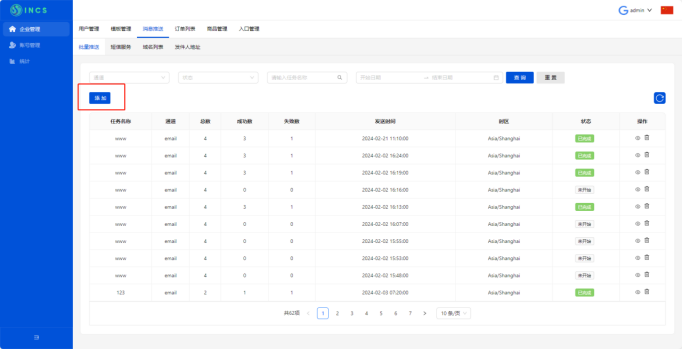 管理员或者客服可以基于通道,创建一个消息群发任务推送给用户,并且可以查询到目标用户的发送状态。