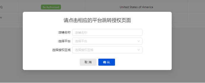操作:点击平台授权弹出相应的平台授权,跳转相应授权页面,授权成功就可以自动返回,即为授权成功。