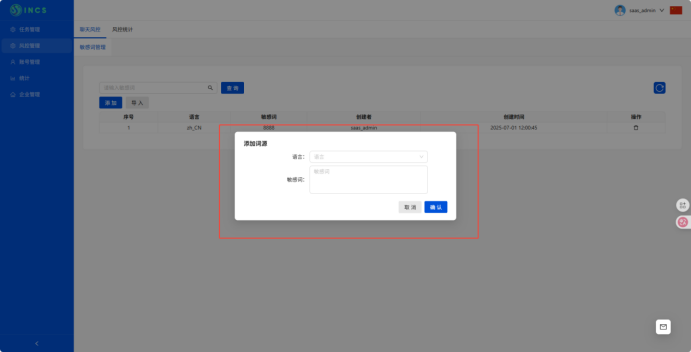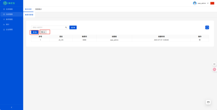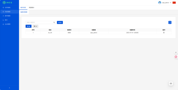 管理员可以在“风控管理-聊天风控-敏感词管理”里面添加敏感词