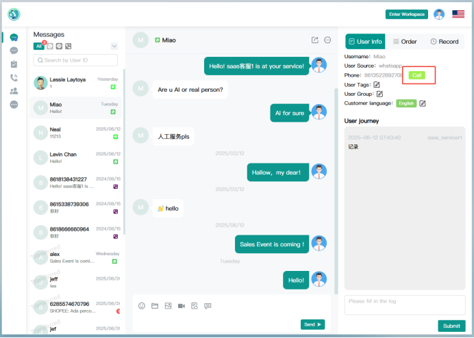 客服工作台: 作为一线客服人员的统一操作平台,支持客服代表高效处理来自各渠道的实时会话请求,并集成语音通话功能,实现无缝沟通。