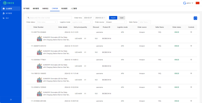 订单列表可以查询到亚马逊或者其他渠道的订单信息以及订单详情与运输信息。
