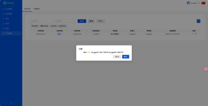 当客服人员对这个工单任务有疑问或者处理不了的时候可以向管理员提交转单审批申请, 当管理员同意该转单申请时,这个工单就自动转走了,就不会出现在该客服人员的任务工单列表里面