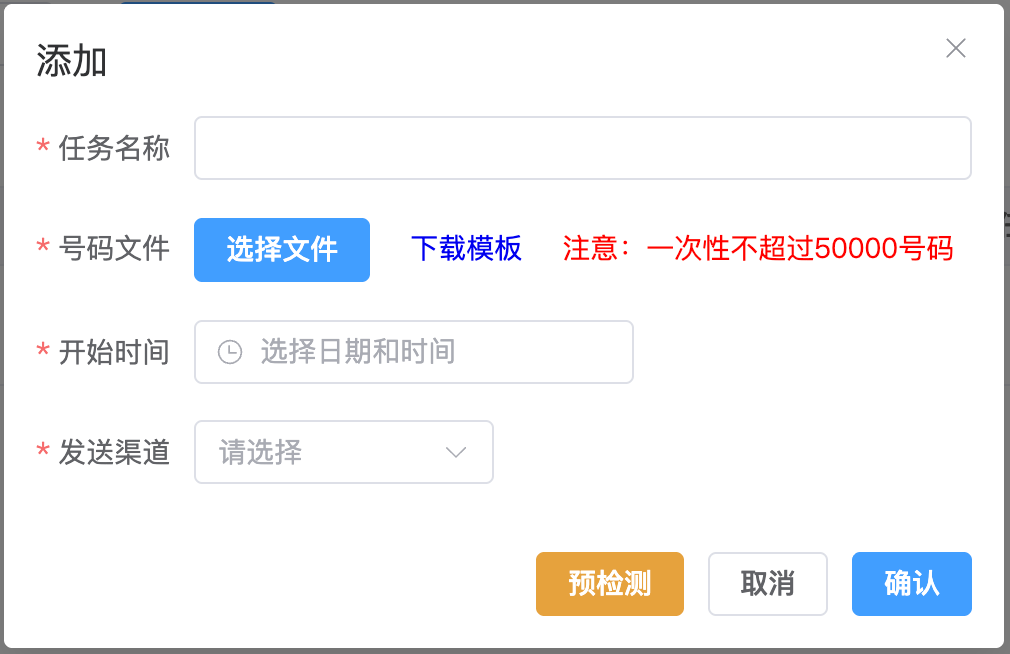 - 定时发送:选择具体的预定发送时间,系统将在指定时间自动开始发送任务