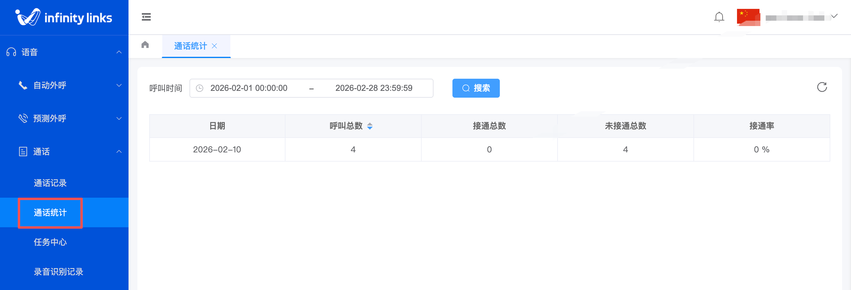⚠️ 注意:若呼叫总数为0,该字段显示为 - 或 0%。