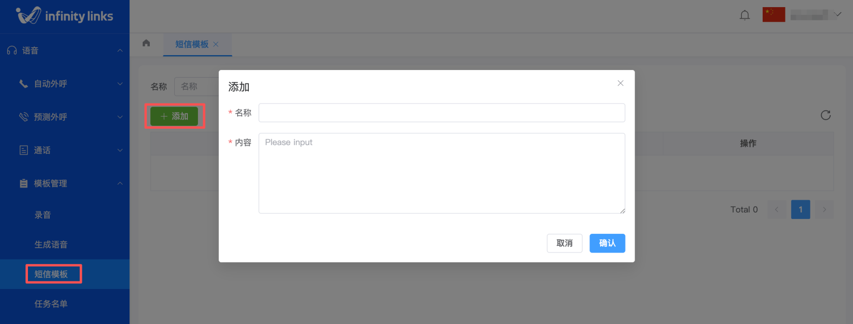1.登录语音后台 → 进入 「语音」「模板管理」「短信模板」