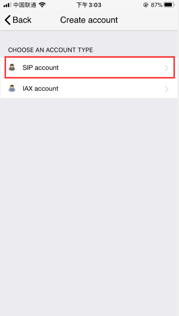 | Account name | softphone account |