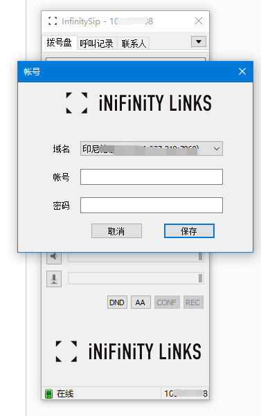 1. After InfinitySip is installed by default, a pop-up window that requires login will pop up;