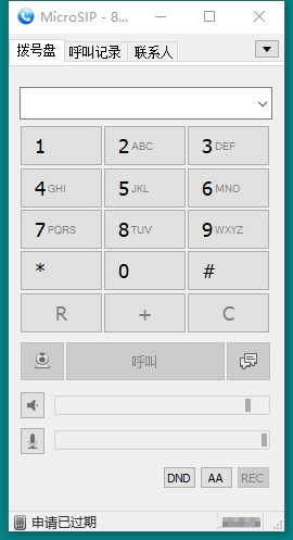 3. The softphone prompts: When the application has expired or Application expired, the server may be requested to be temporarily unavailable.